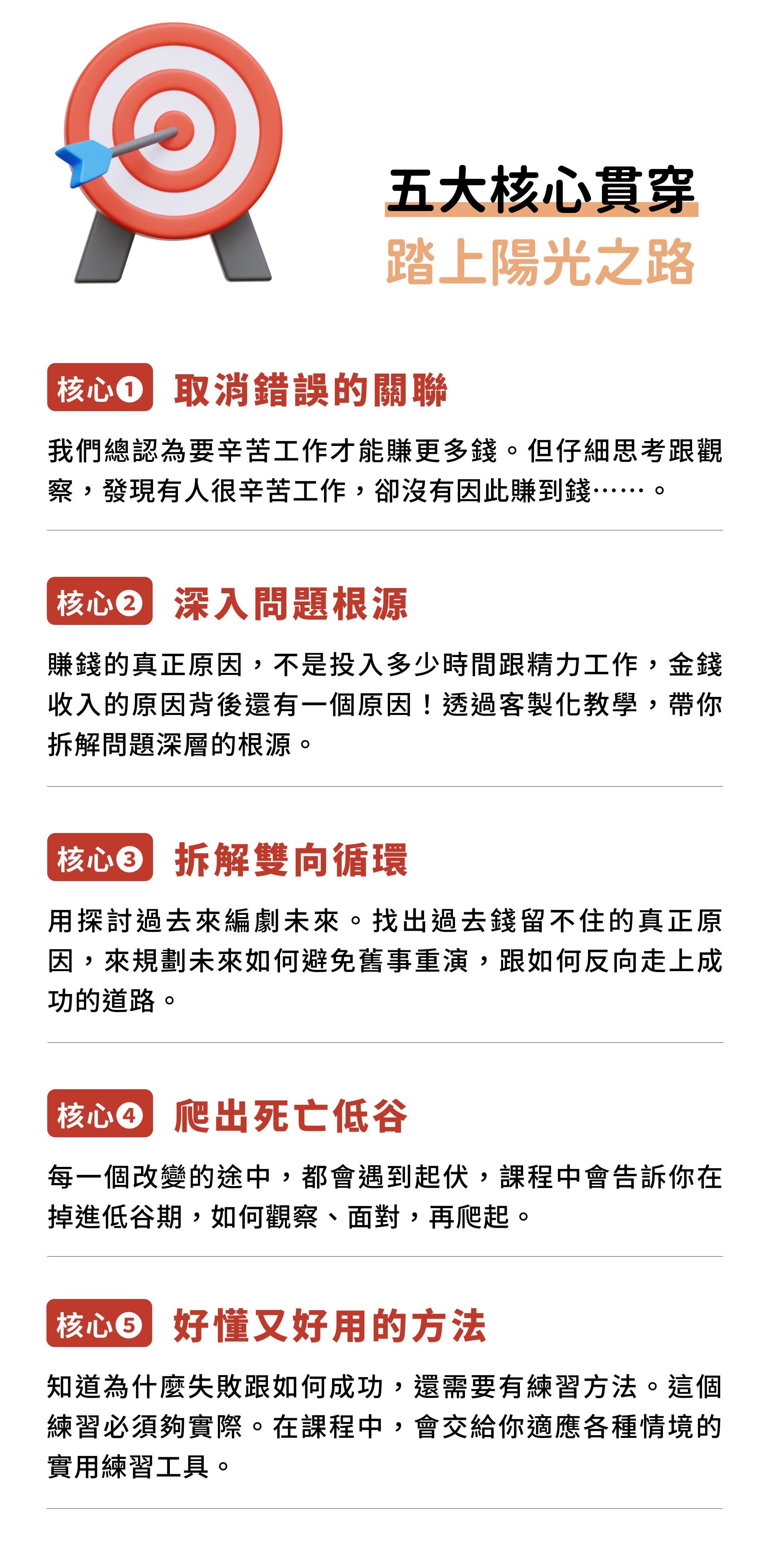 這門課,就是專門帶你「解決金錢問題」,以及教你如何「達成財富目標」!