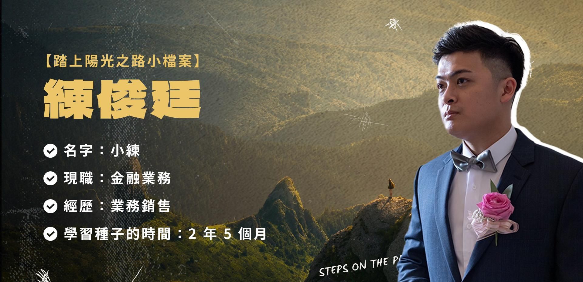 有一天聽到 Max 說著自己用種子法則翻轉人生,把被「詐騙的400 多萬元」從詐騙集團手中要回來,而決定要參加「踏上陽光之路」,好奇到底發生了什麼事情?想跟著參與手把手的帶領練習,設定了一個目標「月收入20 萬」。
