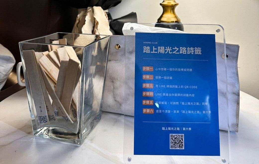 就像遇到徬徨時刻,許多人會到廟裡抽籤一樣,我們也在這兩場同樂會中增加「陽光籤詩」的環節,籤詩都是萃取「踏上陽光之路」課程中的經典金句,讓在場的同學能從專屬籤詩中獲得指引,帶回生活上踐行。
